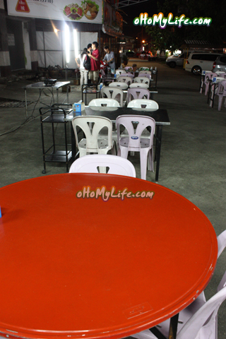 ร้านเขาเปิด ห้าโมงเย็นไปยันเที่ยงคืน อย่ามาเช้าๆ ล่ะ เดี๋ยวไม่ได้กินกันพอดี หุหุ โต๊ะนั่งด้านนอก หลังคาเปิดโล่ง หุหุ
