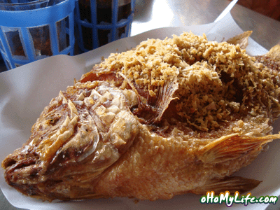 อย่างแรกที่มา ปลาทับทิมทอดกระเทียม ตัวไม่เล็กเลยแหละ อิอิ ราคาก็ 120 บาทขาดตัว จ่ายไปก่อนเลย เพราะเป็นของร้านติดข้างๆ กับนายโอ |