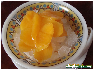 - ตักเสิร์ฟใส่น้ำแข็ง ใส่มะปราง โรยเกลือป่นเล็กน้อยที่มะปราง จากนั้น ราดน้ำเชื่อมได้เลย