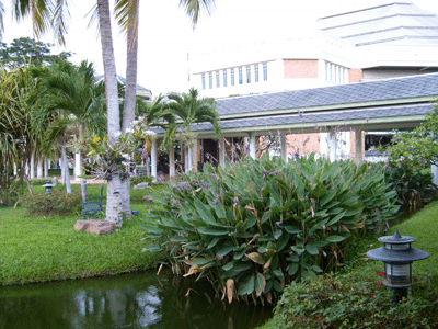 มุมจากสระน้ำ มีหลายอาคารกว้างมากๆ |