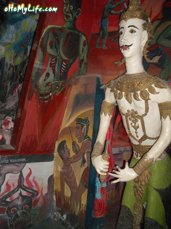 อันนี้อยู่ในกรงกันเลย ด้านหน้าจะมีป้ายบอกว่าทำกรรมอะไรมา จึงได้รับโทษเช่นนี้ |