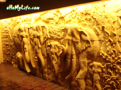 หินแกะสลักรูปช้าง กลางสระ เล่นน้ำไปด้วย นวดตัวกับน้ำวนด้วย ได้บรรยากาศสุดๆ ไม่อยากจะพูดเล๊ย.. |